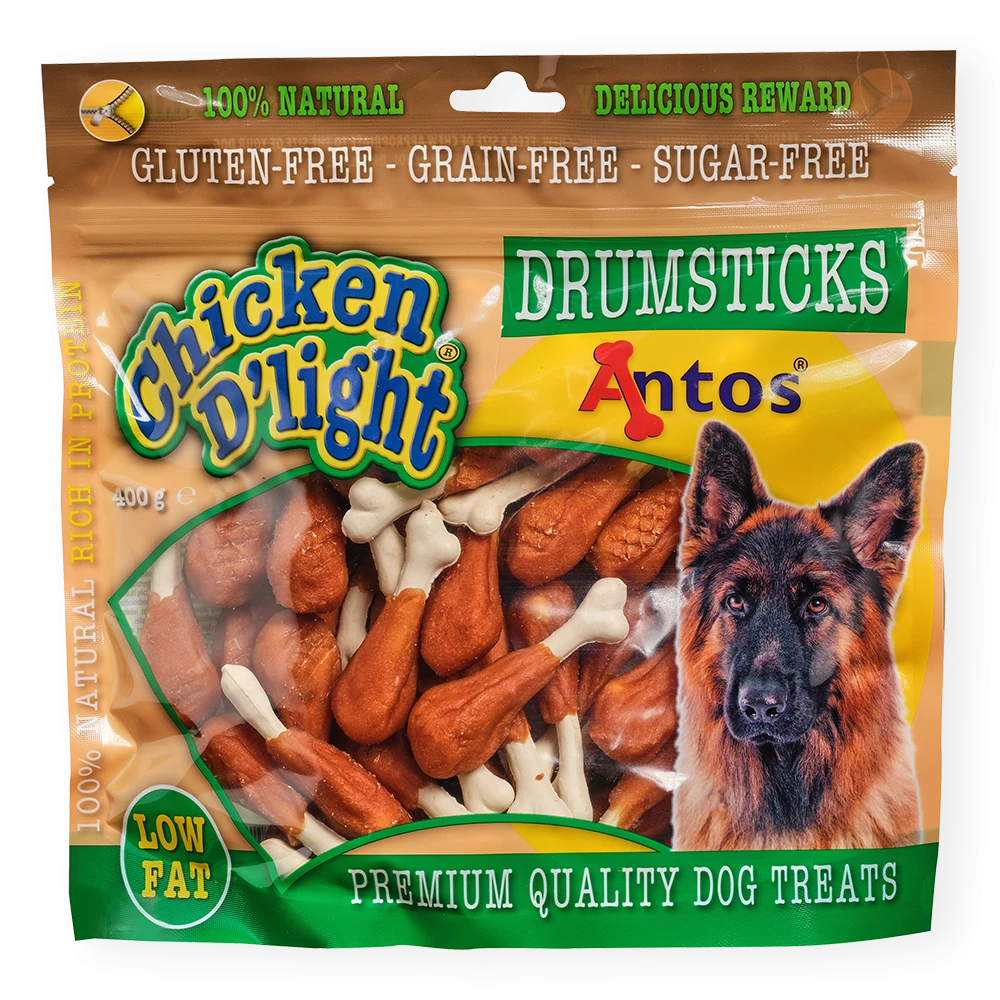 - Great-tasting and naturally delicious, our Chicken D’light Drumsticks have earned the loyalty of so many dogs. The treats are made of calcium bones wrapped in chicken meat.