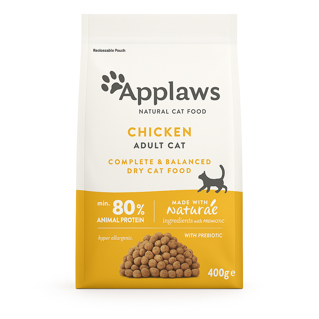 - Applaws Dry Food Chicken Recipe contains nothing more than the ingredients listed and is a complete and balanced pet food for adult cats.