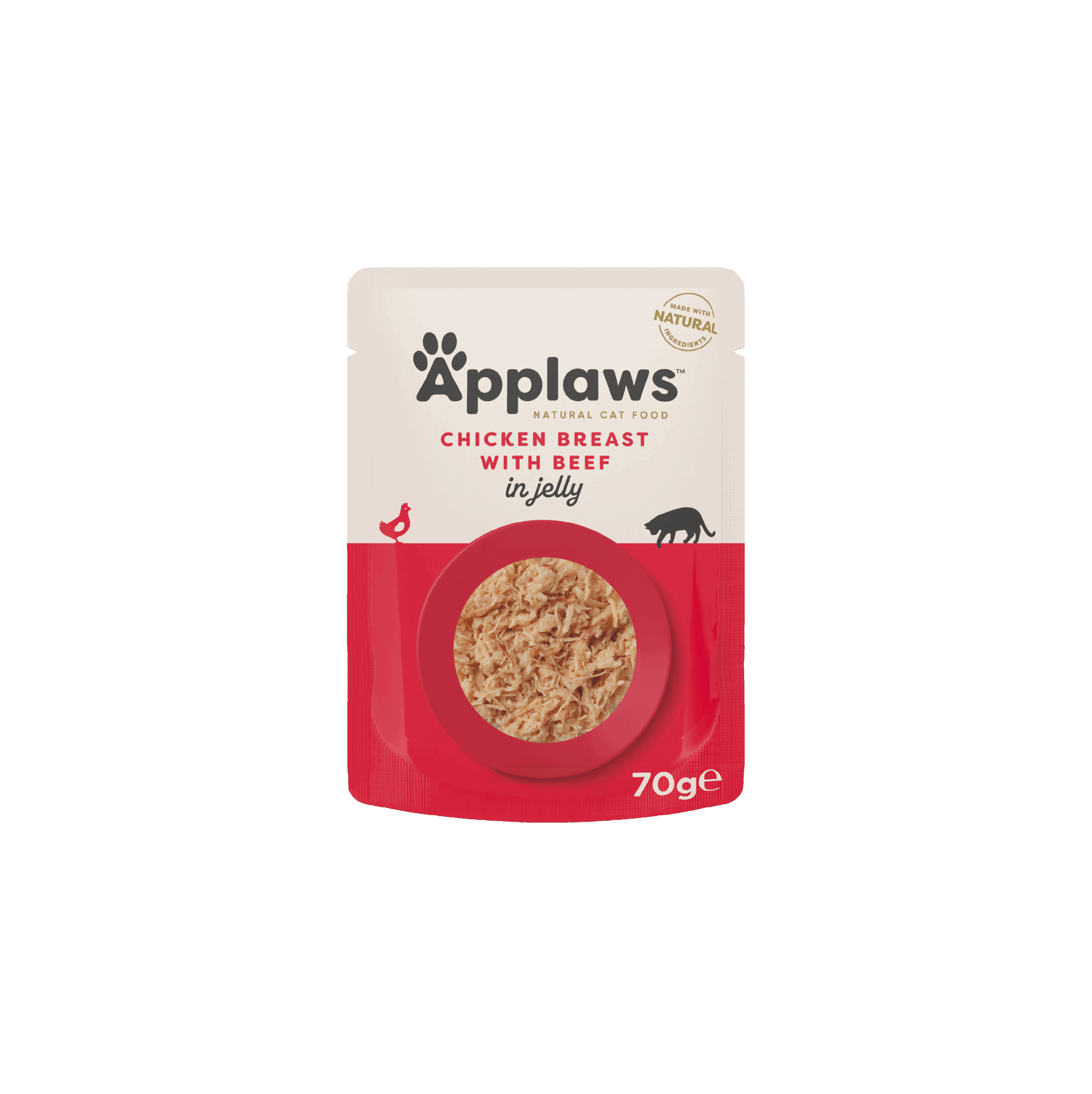 - Applaws Chicken Breast with Beef in Jelly is a complementary pet food for adult cats, made with natural ingredients.