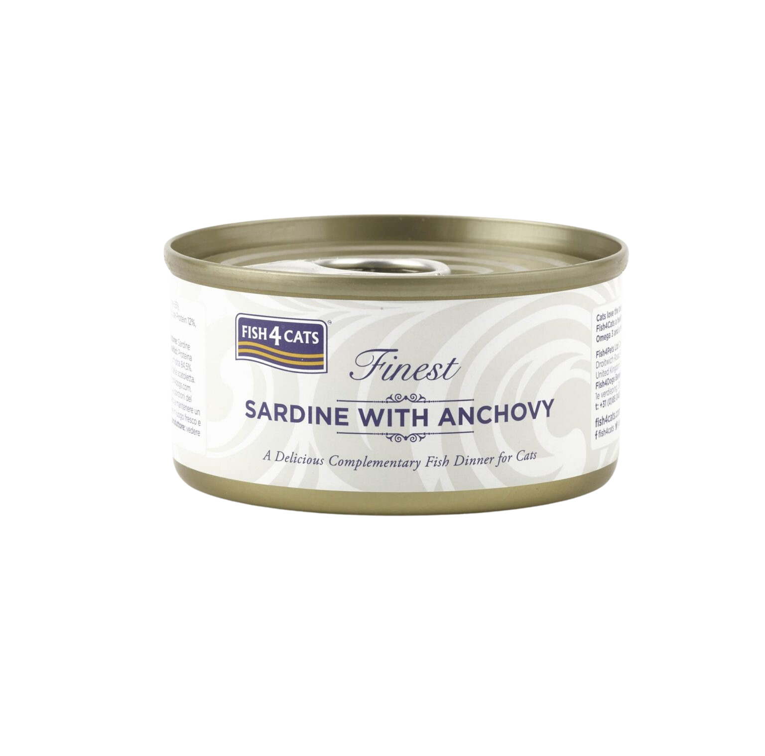 - Give your cat a taste sensation with Fish4Cats Sardine with Anchovy. This rich, savoury combination of sardine and anchovy is sure to please even the fussiest eaters. It’s packed with benefits for a healthy coat and skin, while the juicy broth helps support urinary tract health. Made with natural ingredients and free from artificial colours, flavours, or preservatives, this grain-free meal is a premium choice for pet owners who value quality nutrition.
