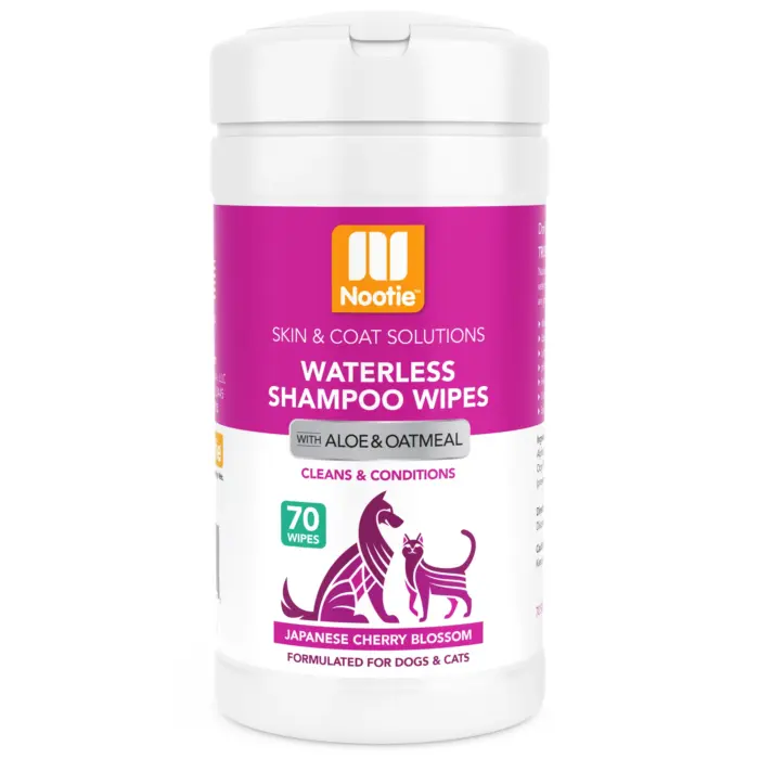 - Keeping your pet clean and smelling fresh between baths is easy with Nootie Waterless Shampoo Wipes. This no-rinse, alcohol-free, deodorizing formula contains active cleansing ingredients plus fur-softening glycerin and soothing aloe & oatmeal to clean and condition your pet’s skin and coat.