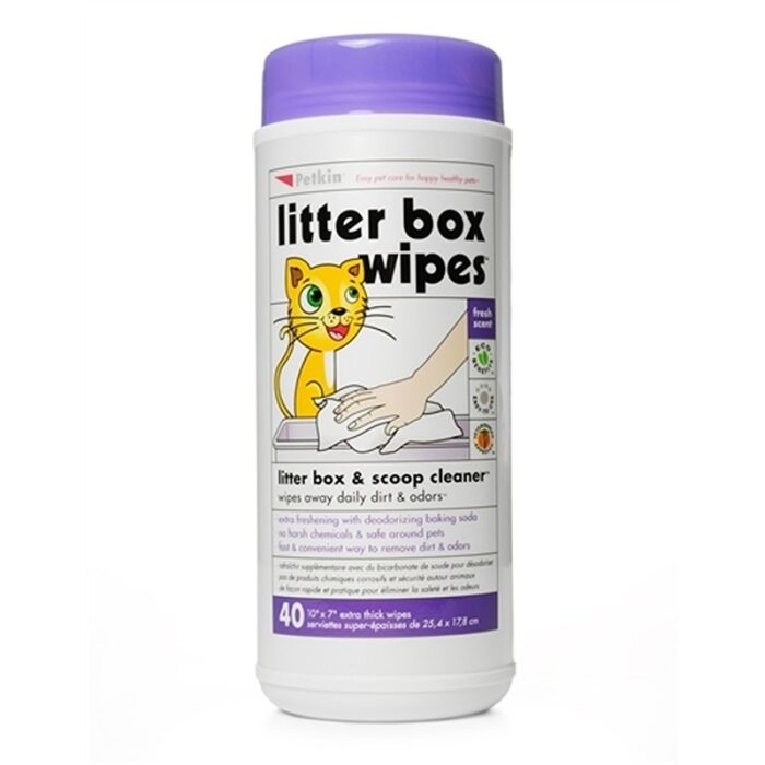 - Litter Box Wipes provide a fast, convenient way to clean and deodorize litter boxes and litter scoops. Each thick wipe is moistened with a deodorizing baking soda formula that’s safe enough for use around cats, yet powerful enough  to remove tough dirt and odors.